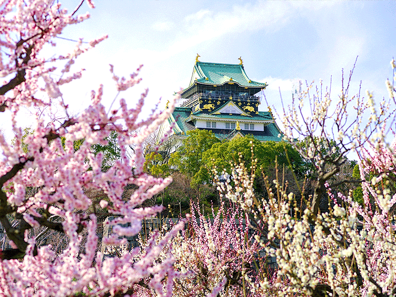 見渡せば梅尽くし、 1200本超の花々が一斉に華やぐ 天下人の巨城・大阪城へ。 天守と…