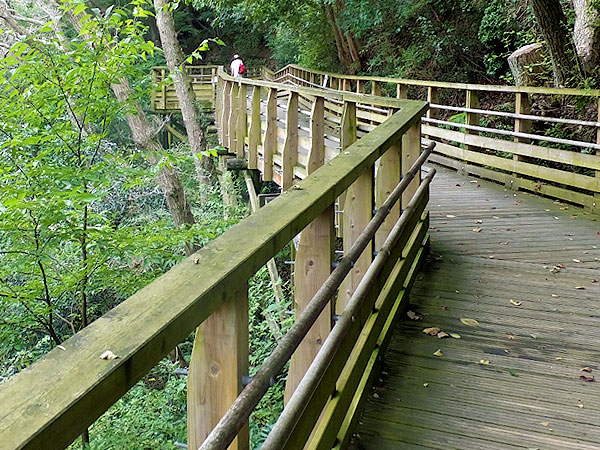 清らかな渓谷に張り出した、森林鉄道風歩道橋。
