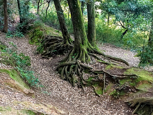 横堀・竪堀がはっきり刻まれた、中世城郭の遺構。