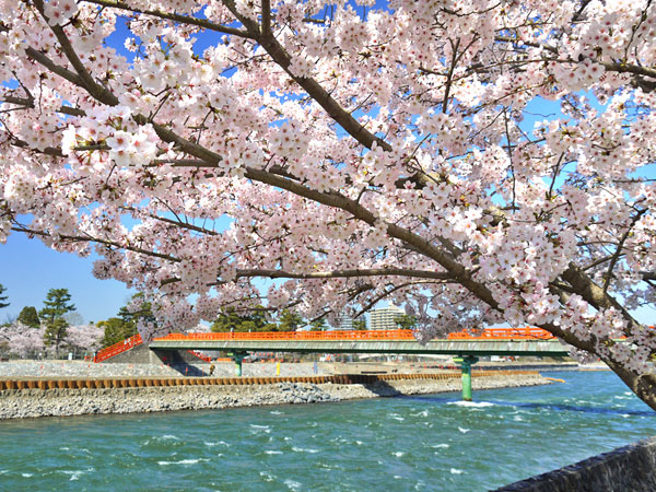 雄大な宇治川を挟んで