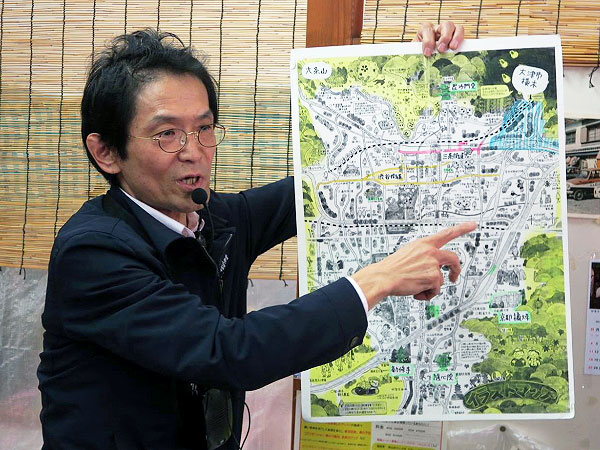 - 【距離:約1.8km】 京阪「四宮」駅 → 1.四ノ宮カレー → 2.山科地蔵(徳林庵) → 3.真田商店 → 4.三品菓子舗前(車石) → 5.明治天皇御遺跡 → 6.三木屋金物店 → 7.リカー・コレクション龍野 → 8.五条別れ → 9.スイス菓子 ローヌ → (解散、最寄駅は地下鉄「山科」)