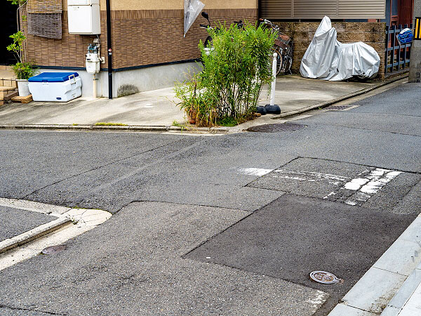 不規則な道路配置、突如現れる凸凹地形、