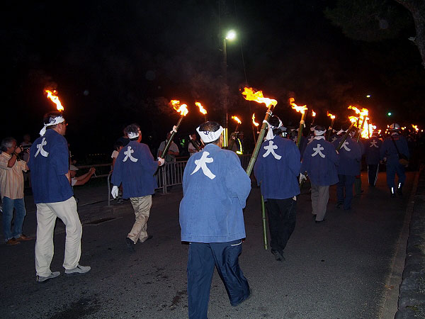 点火に向かう勇壮な松明行列があり、