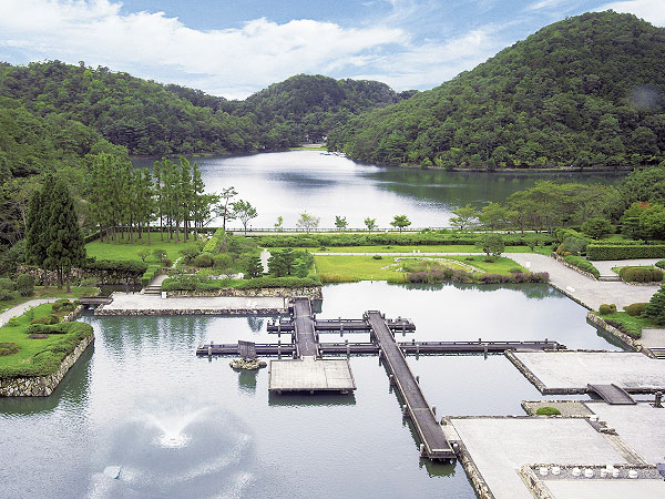宝ヶ池を望む絶景の日本庭園。