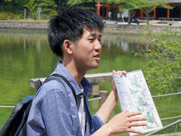 【距離:約2.8km】近鉄「畝傍御陵前」駅 → 1.神武天皇陵 → 2.北参道 →  3.本殿 → 4.深田池 → 5.一の鳥居 → 6.近鉄「橿原神宮前」駅 (解散)
