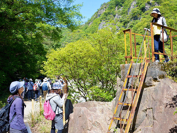 ・舗装されていない廃線跡を歩きます。履き慣れた靴でお越しください。