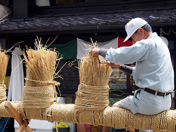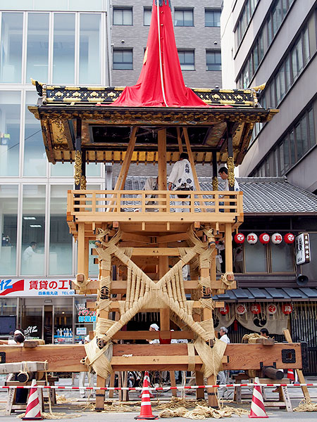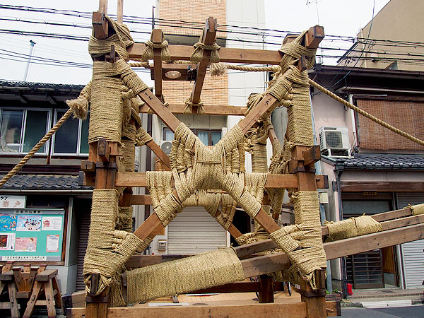 巨大な山鉾が組み立てられる