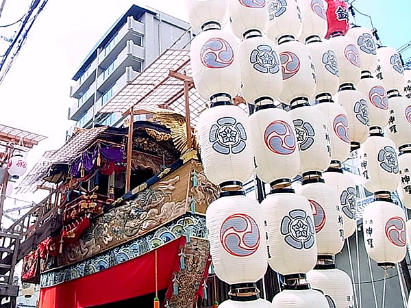 - 【距離:約1km】 地下鉄「四条」駅 → 1.山伏山会所 → 2.蟷螂山 → 3.伯牙山 → 4.船鉾 → 5.保昌山 (解散) ※靴を脱いで上がる場所あり