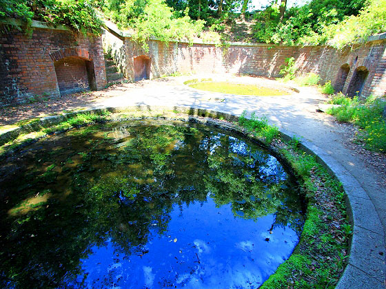 ツタに覆われたレンガ造りのシェルター。