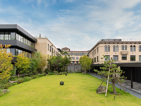 元清水小学校をコンバージョンして生まれた、ラグジュアリーホテル。傾斜地を活かした棟の配置や、洋と和のデザインを融合させた外観・内装など、傑作校舎の特徴的な意匠を継承する。