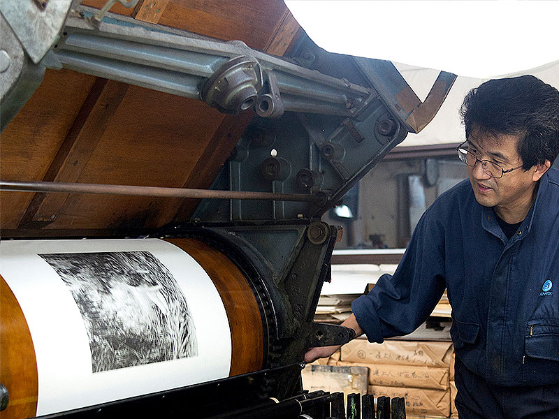 便利堂コロタイプ研究所所長。1979年便利堂入社。以来44年間、コロタイプ印刷に携わる。正倉院文書、蒙古襲来絵詞、宮内庁花園院宸記、伊藤若冲・動植綵絵などの文化財複製を制作。森村泰昌 「フェルメール研究 画家のアトリエ」、植田正治ポートフォリオ「童暦」などの芸術写真のコロタイププリントも制作。日々コロタイププリントの表現の可能性を研究している。