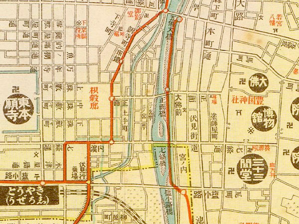 - 【歩く距離:約5.3km】1.京阪「清水五条」駅 → 2.旧大仏前駅 → 3.七条大橋 → 4.旧塩小路駅 → 5.七条駅 → (乗車) → 6.丹波橋駅 → 7.京阪、近鉄相互乗り入れ線路跡 → 8.丹波橋駅 → (乗車) → 9.石清水八幡宮駅 → 10.木津川橋梁 (解散) ※解散場所の最寄駅は、京阪「石清水八幡宮」