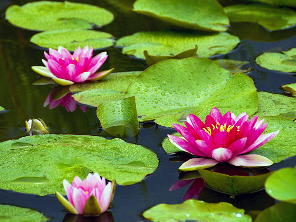 境内の氷室池を飾る美しい花菖蒲に、