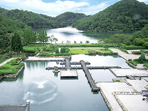 日本初の国際会議場として、1966年に完成。宝ヶ池を望む絶景の地に、156,000平方メートルという広大な敷地を持つ。大谷幸夫が設計した建築は、戦後モダニズムの代表作として知られている。