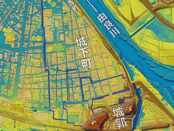 現代凸凹地形+近世城下町の