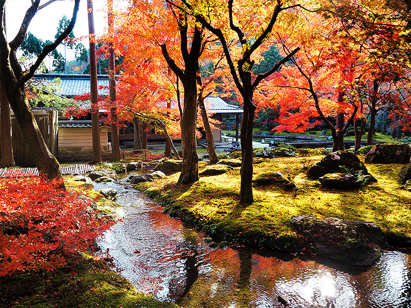 鮮やかな紅葉に染まる源光庵。