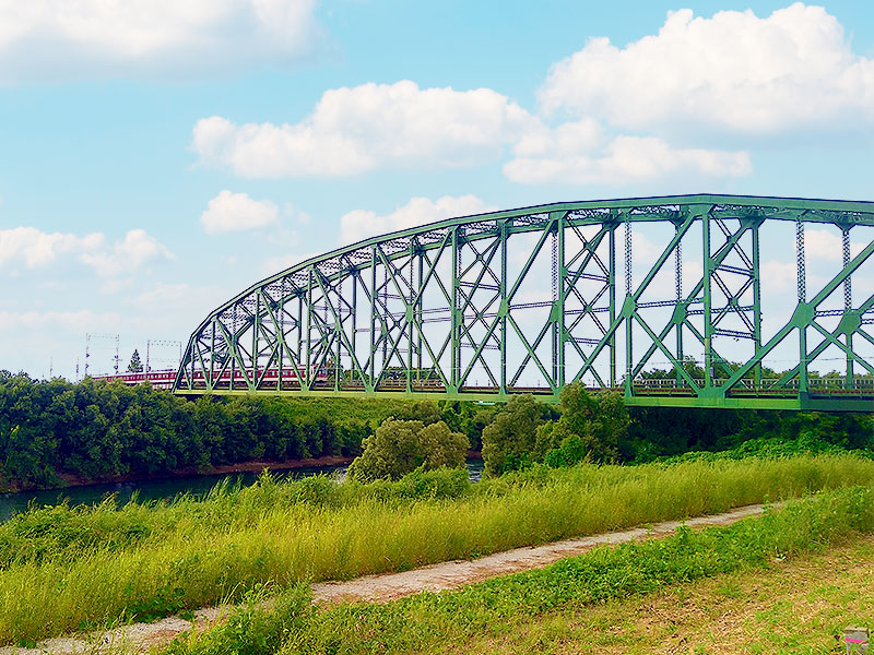 残された明治の橋台と、その真上に架かる鉄橋。