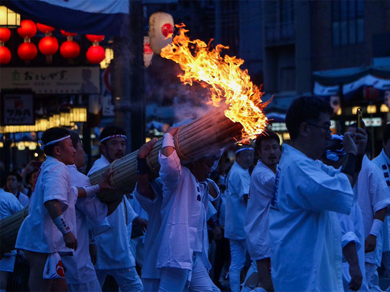 ~大松明をかつぐ男衆、裸神輿が鴨川へ!祇園祭の主役を清める火と水の祭り~