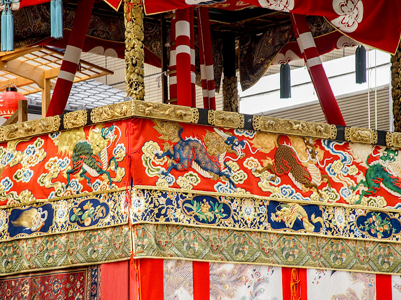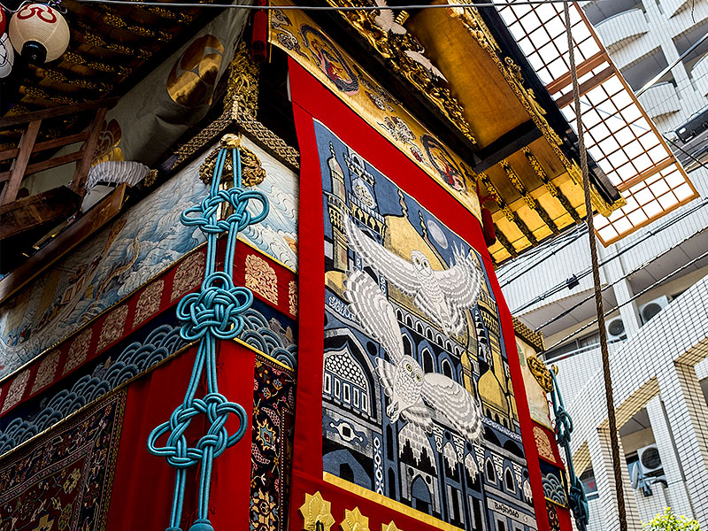 建ち並び巡行を待つ鉾のなか、