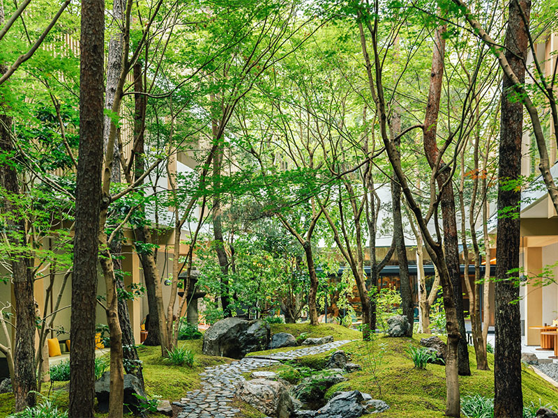 Condé Nast Traveler誌「2025年世界のベスト新ホテル」にも選出された、日本初上陸の自然派ラグジュアリーリゾート。東山に佇む全81室の客室は、京都の伝統とモダンデザインが美しく調和している。