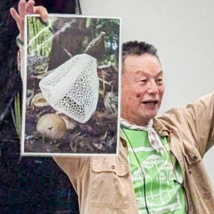 京都御苑きのこ会 世話役。植物でも動物でもない生物、菌類に属する「キノコ」の自然発生に魅了され、その生き様を伝える“キノコガイド”として活躍中。関西菌類談話会会員 きのこ展実行委員、日本菌学会 終身会員。