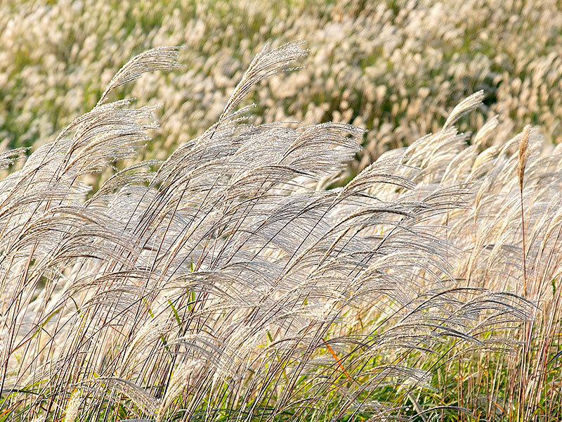 黄金に輝くススキの大海原が