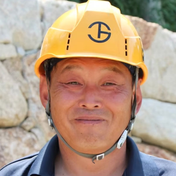 第十五代目穴太衆頭。江戸時代初期から城の石垣をつくっている家業を継ぐべく、十三代目の祖父に弟子入り。石垣づくりや修復などを行うとともに、土木工事、造園工事なども請け負い、石垣づくりの技と穴太積みの伝承に努力している。株式会社粟田建設・代表取締役社長。