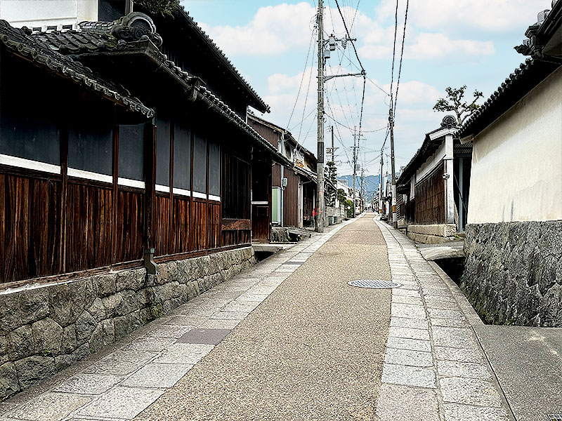 なまこ壁の家老屋敷の先に