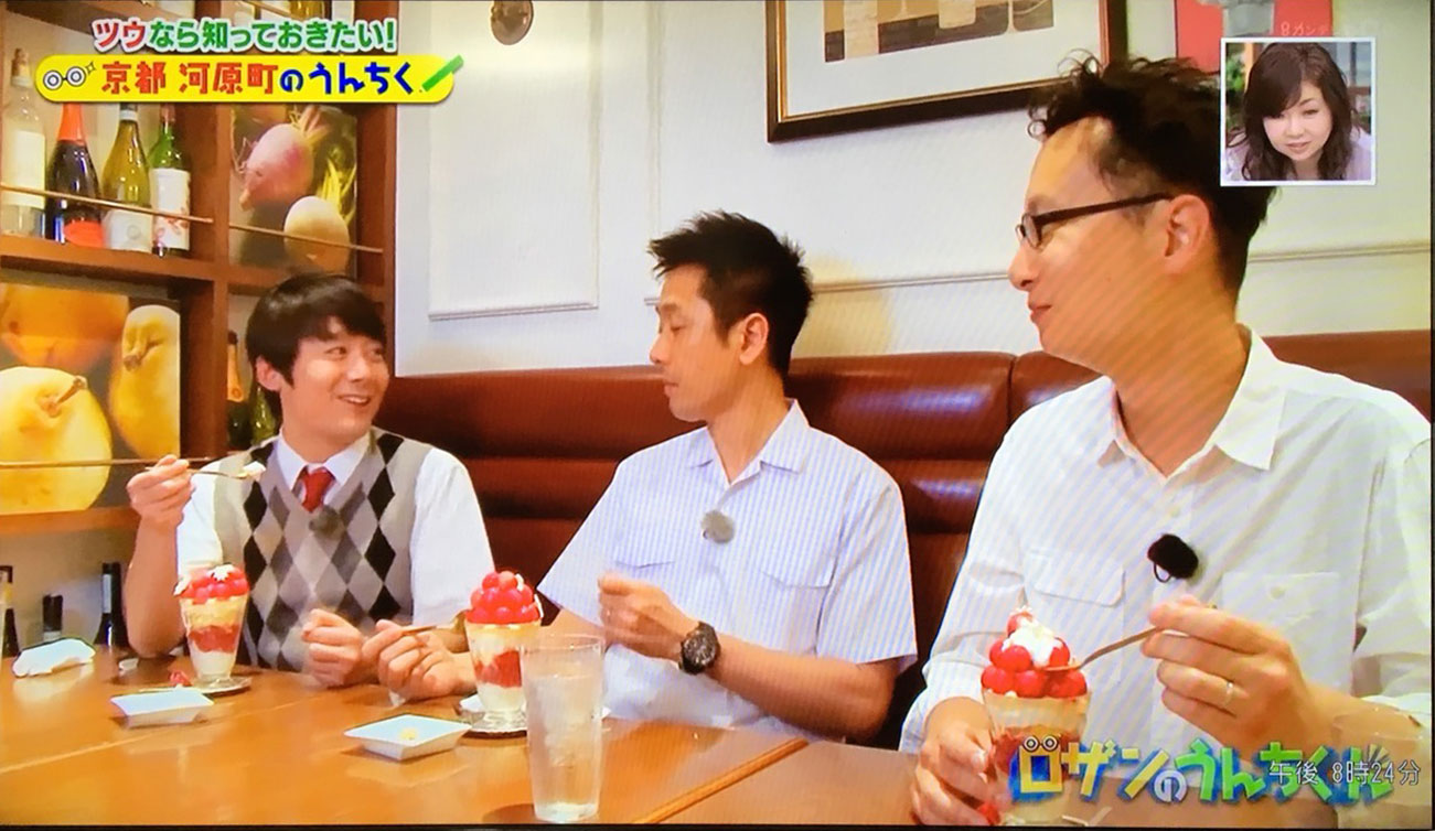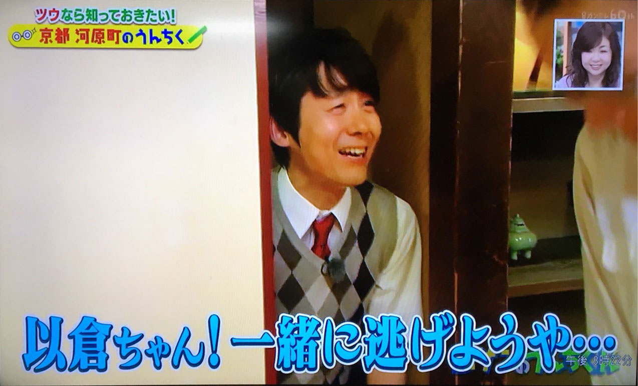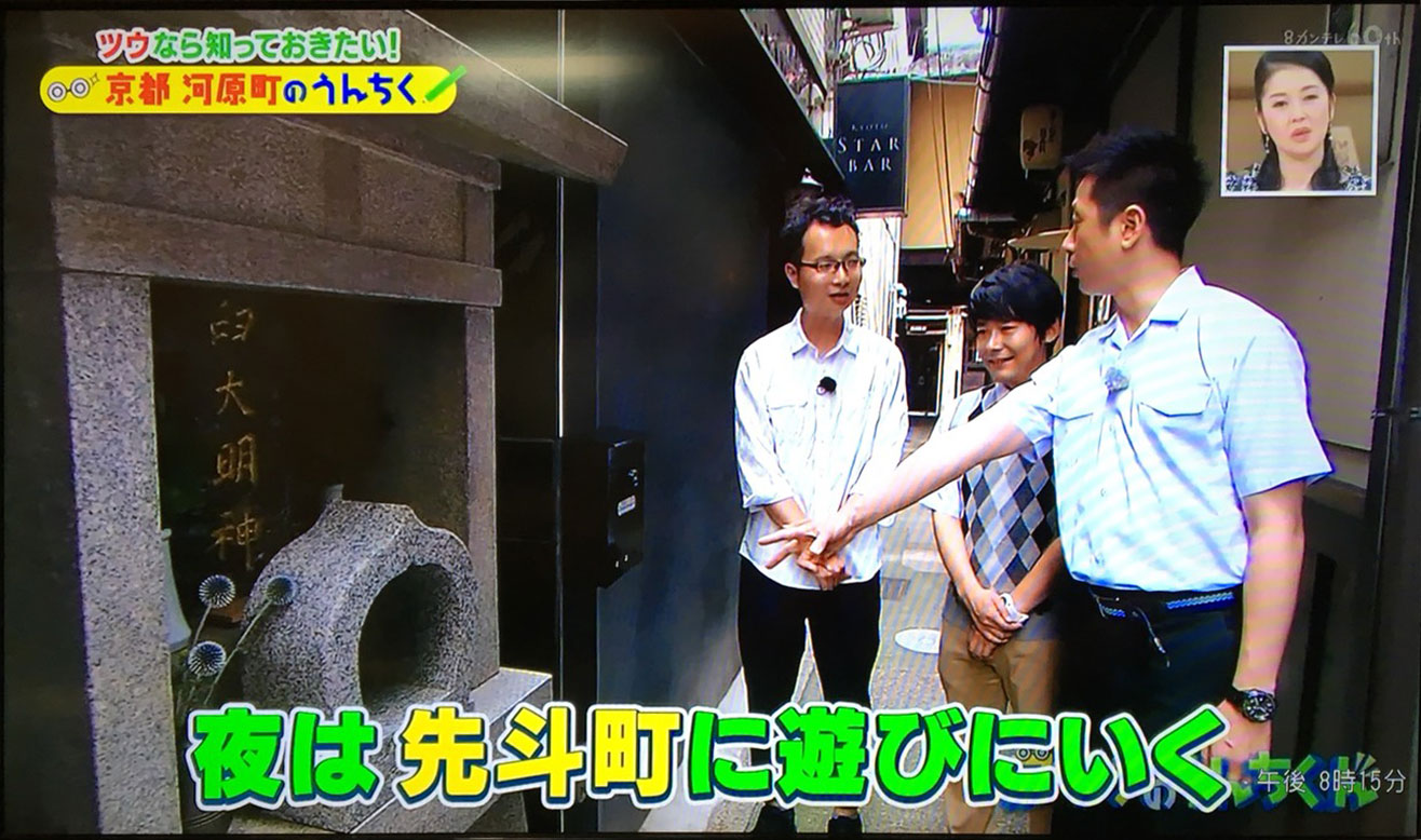 お笑いコンビ「ロザン」のお二人を連れて、河原町・先斗町をご案内しました。