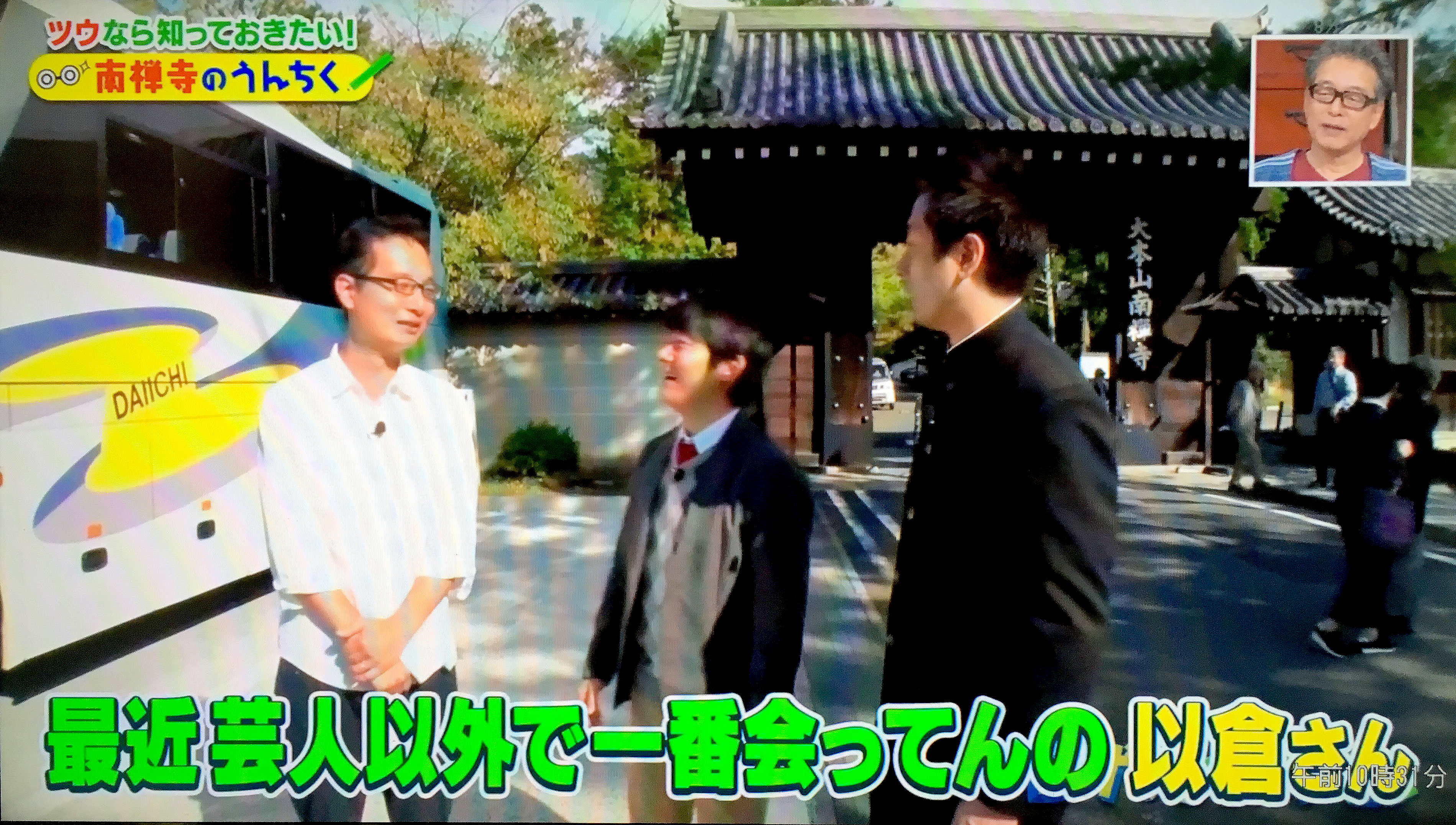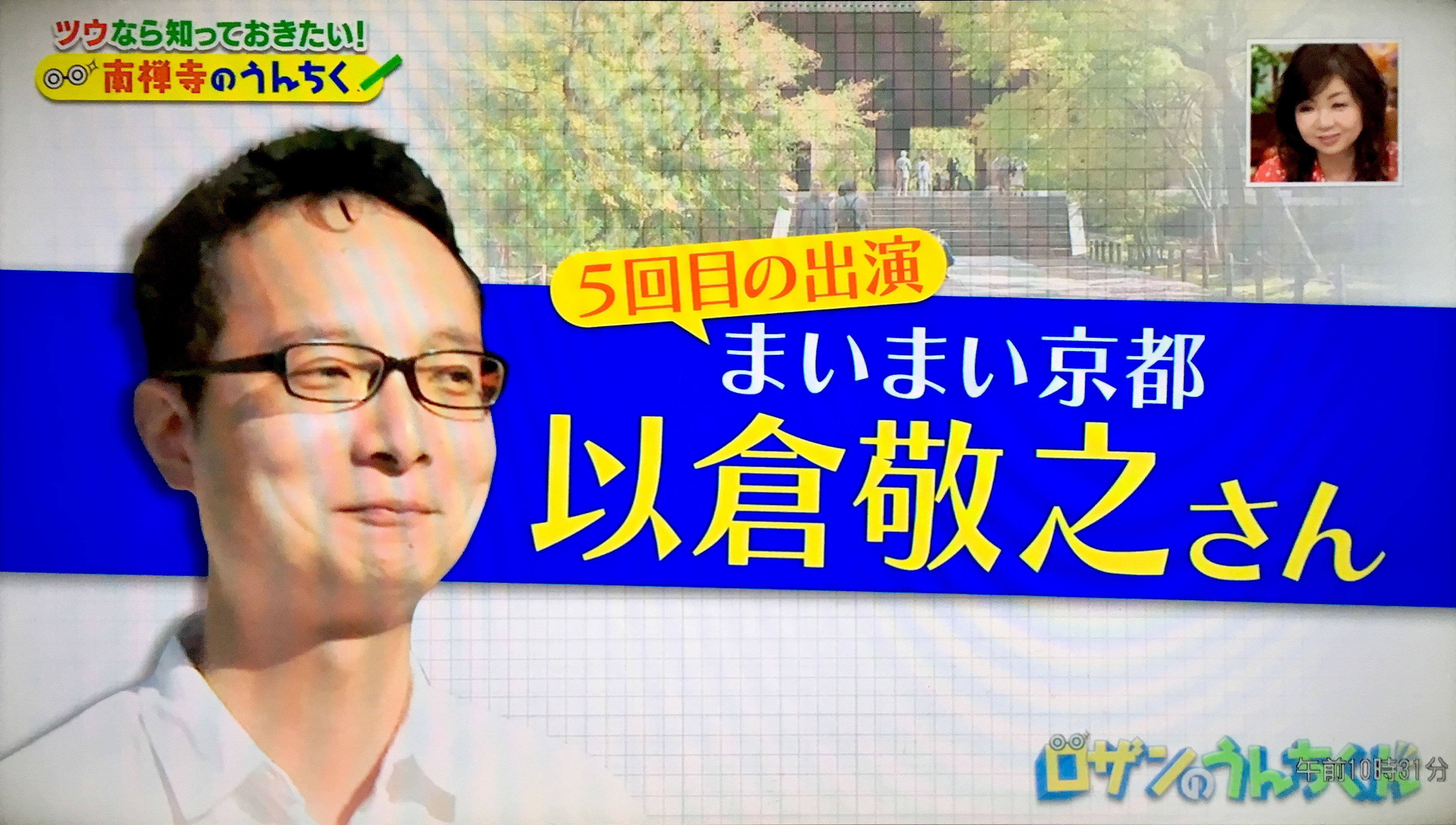 関西テレビ「よ~いドン!」にスタッフの以倉が出演。 お笑いコンビ「ロザン」のお二人を連れて、南禅寺をご案内しました。