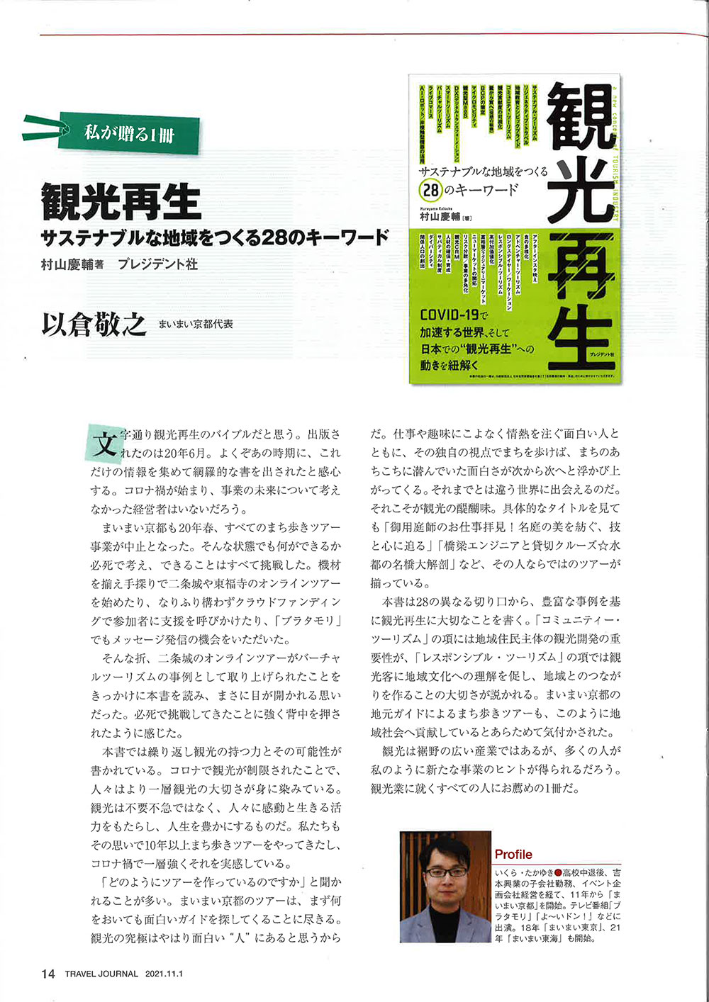 週刊誌 TRAVEL JOURNALに掲載されました。