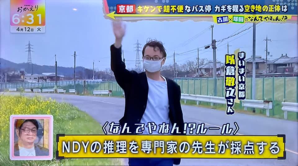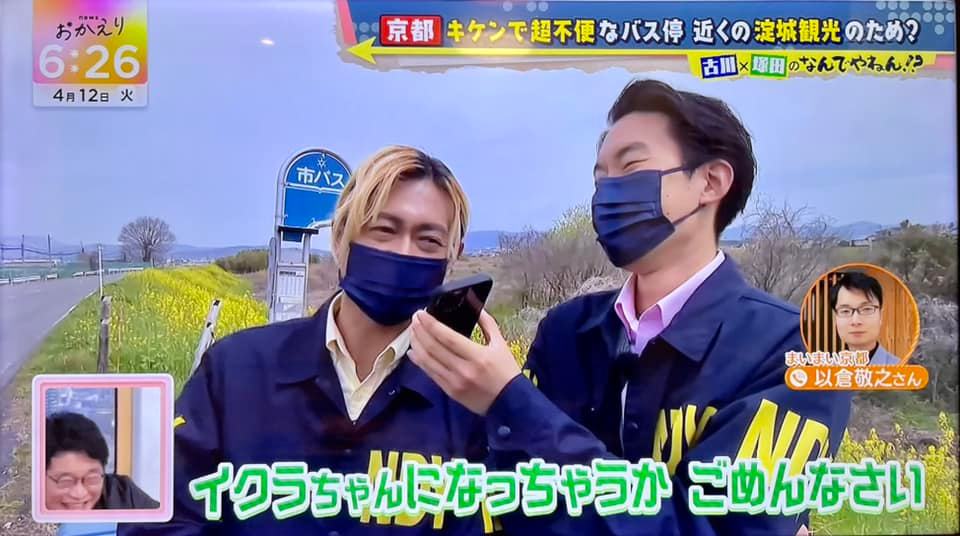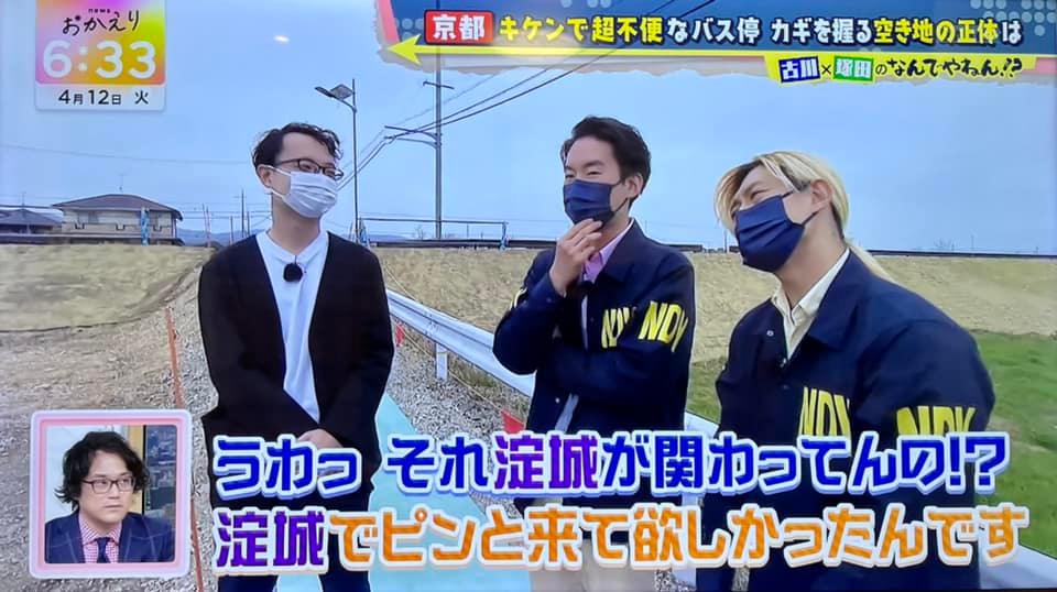 朝日放送の番組「newsおかえり」に、まいまい京都代表の以倉が出演。 古川昌希アナウンサー・A.B.C-Z塚田僚一さんを連れて「淀にキケンで超不便なバス停があるのなんでやねん!?」をご案内しました。