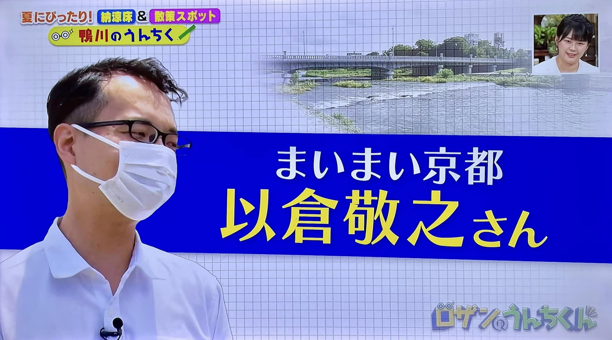 関西テレビ「よ~いドン!」に代表の以倉が出演。 お笑いコンビ「ロザン」のお二人を連れて、鴨川をご案内しました。