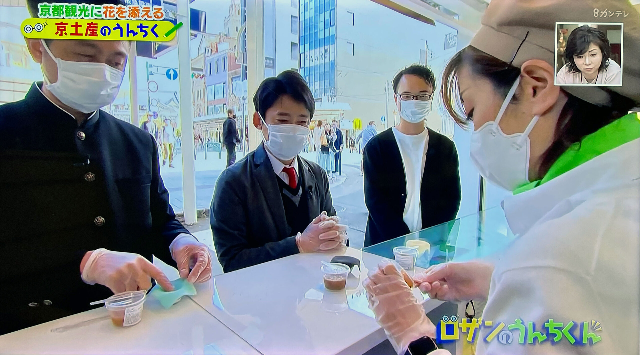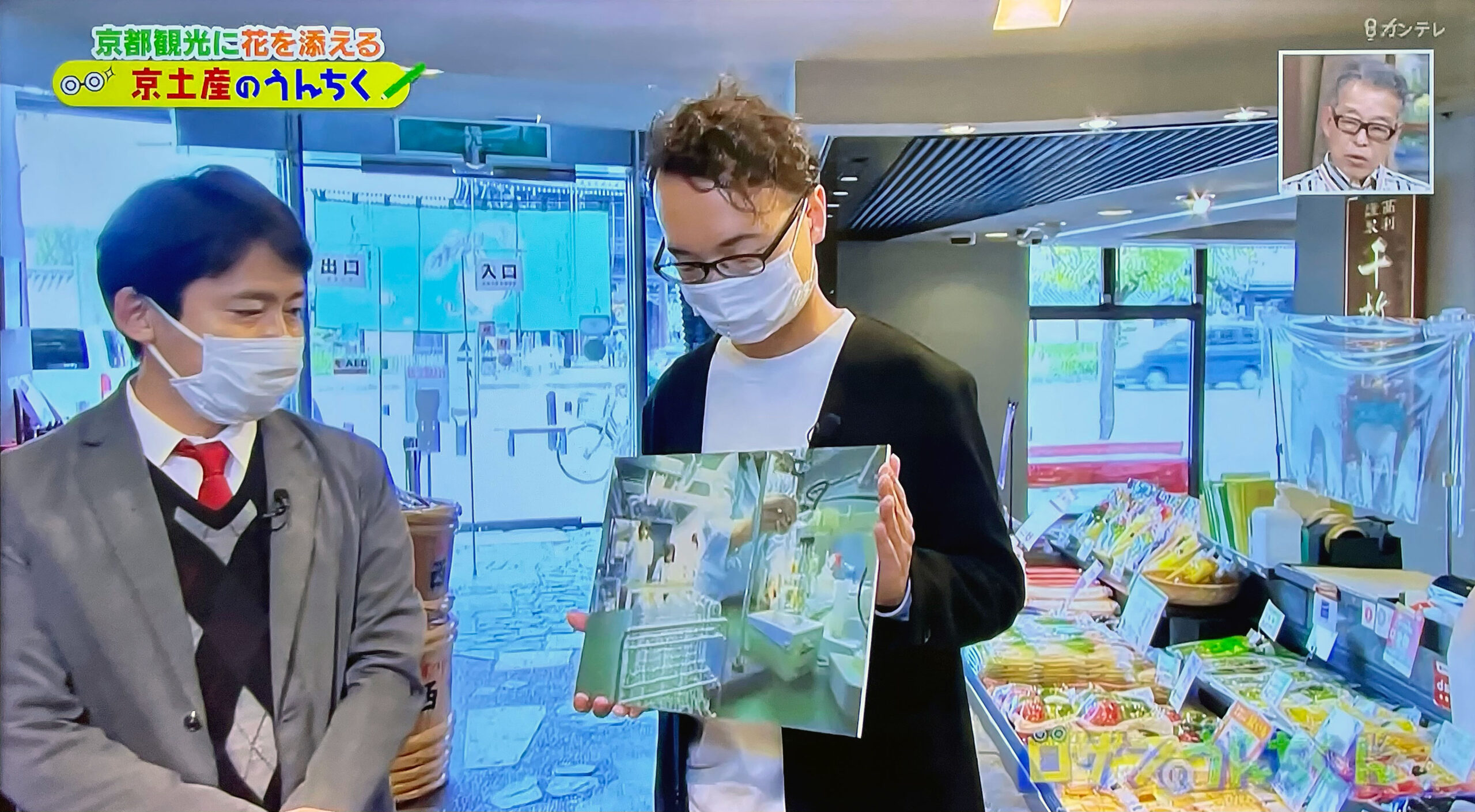 お笑いコンビ「ロザン」のお二人を連れて、京土産をご案内しました。